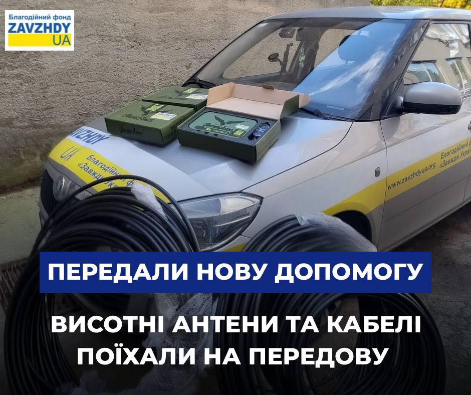 Команда Благодійний фонд «Завжди Україна» передала виносні антени та кабелі для військової частини А7381.