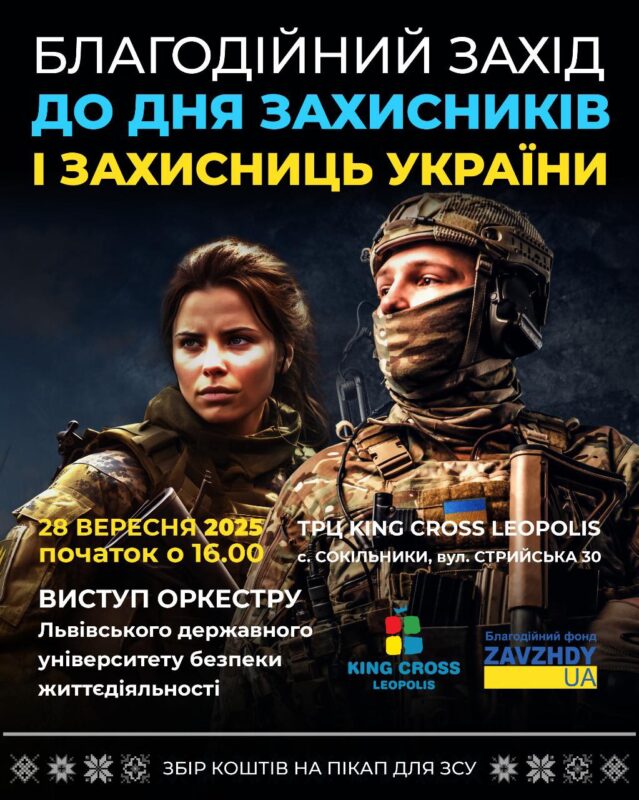 24 Вер Анонси Posted by adminua Благодійний захід до Дня захисників і захисниць України Друзі! У неділю, 28 вересня, запрошуємо вас на благодійний захід до Дня захисників і захисниць України. Це свято — про мужність... Continue reading