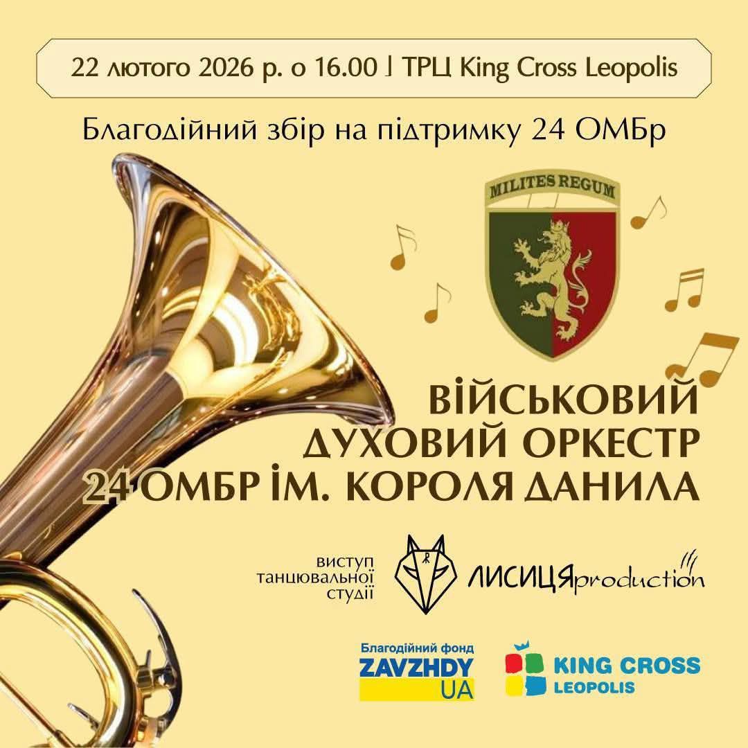 Благодійний фонд «Завжди Україна» разом із військовим духовим оркестром 24-ї окремої механізованої бригади імені короля Данила запрошують на благодійний музичний захід.